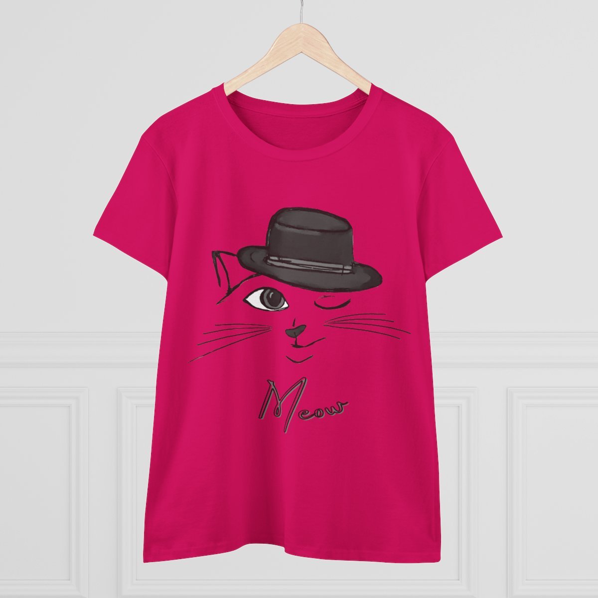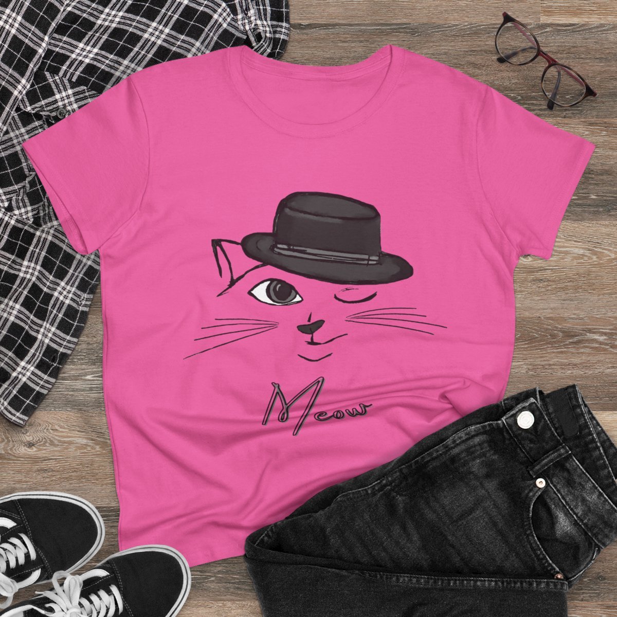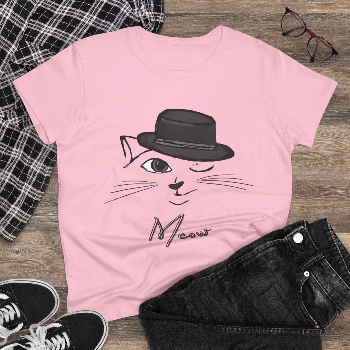Meow Winking Kitty Women's Midweight Cotton Tee
